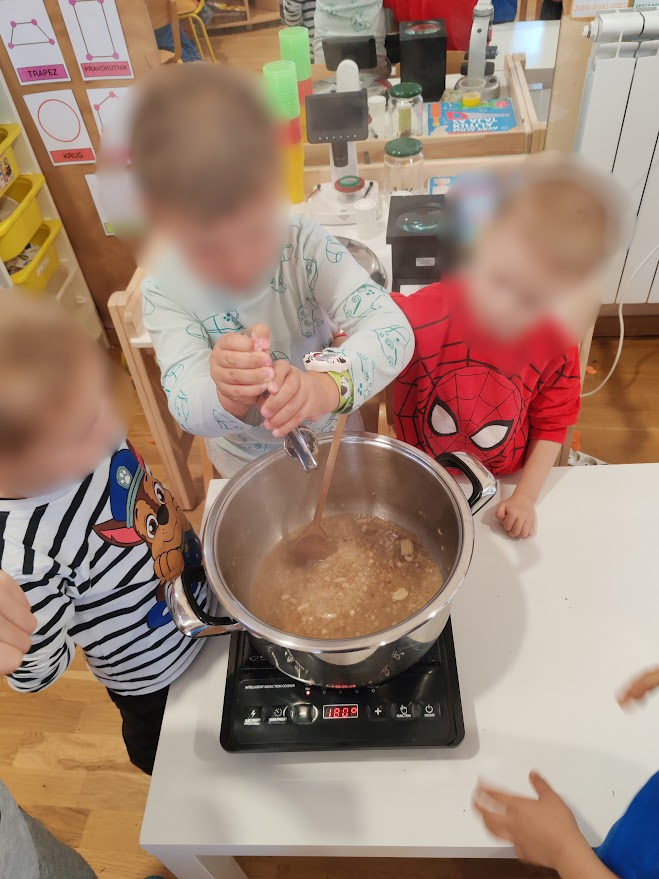 djeca su promatrala znanstvene promjene (kako se tijesto mijenja kad se peče), upoznavala kuhinjske alate i tehnologiju, planirala redoslijed i strukturu pripreme poput malih inženjera, kreativno ukrašavala i izražavala se kroz umjetnost, te brojala, mjerila i uspoređivala količine razvijajući matematičko razmišljanje.