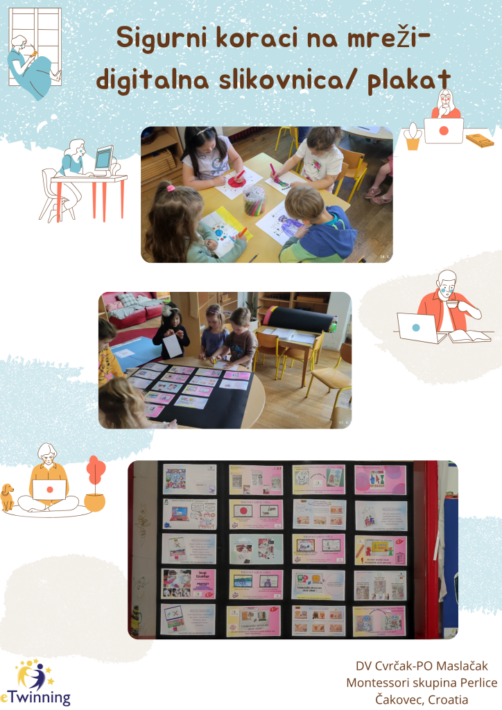 Inspirirajući se pozitivnim iskustvima od prošle ped.god. sa eTwinning projektima Montessori skupina Perlice iz DV Cvrčak/PO Maslačak sa odgojiteljicama Marijanom Borko i Alenkom Novak Sabol uključila se u međunarodni eTwinning projekt “Sigurni koraci na internetu – Učenje rada u digitalnom svijetu”.