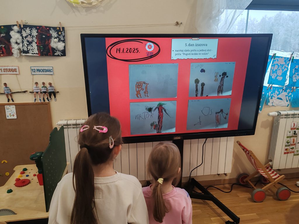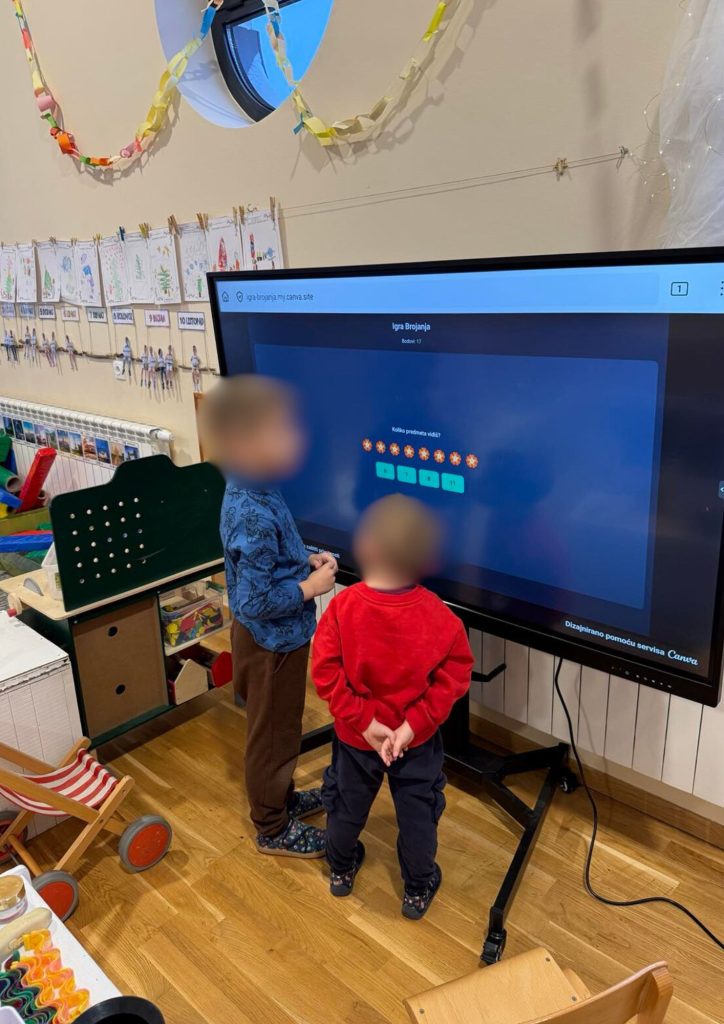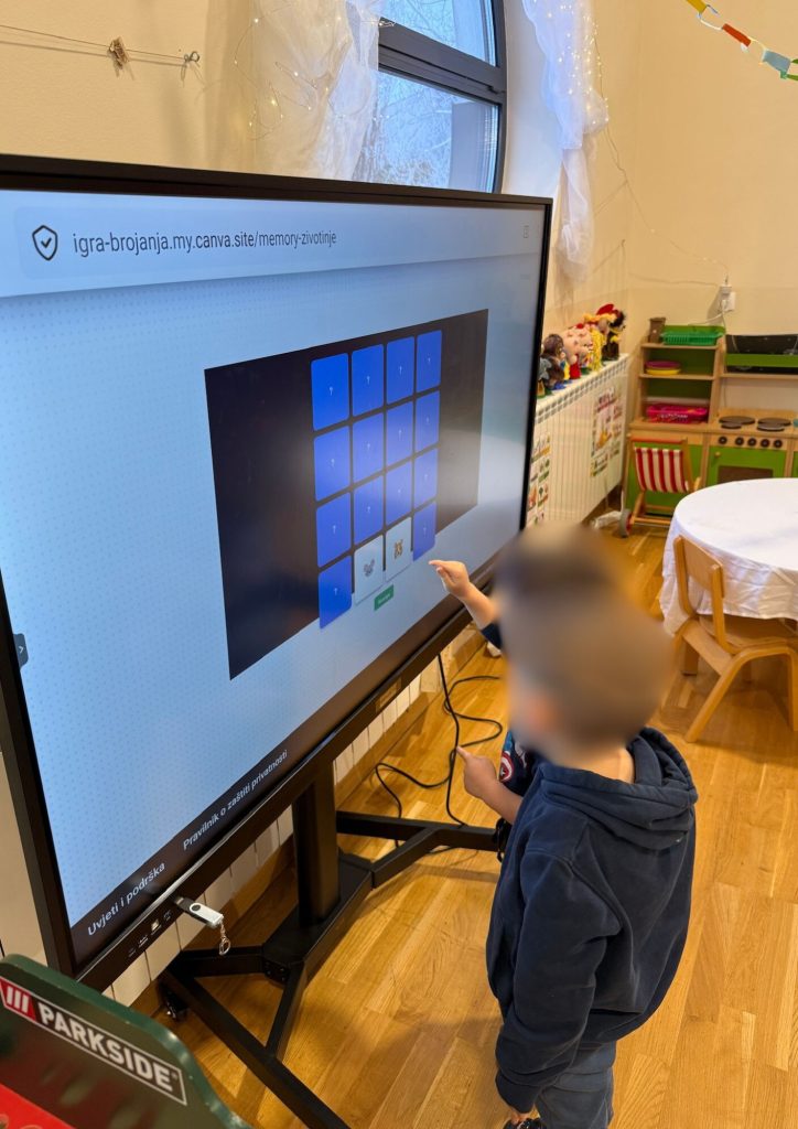 Korištenjem interaktivnog zaslona i suvremenih digitalnih alata djeci je omogućeno učenje kroz igru, istraživanje i aktivno sudjelovanje, pri čemu su djeca na razvojno primjeren i siguran način stjecala osnovna digitalna znanja i vještine. Digitalna tehnologija korištena je kao podrška učenju, a ne kao svrha sama sebi, čime se poticao odgovoran i smislen odnos prema tehnologiji već u ranoj dobi.