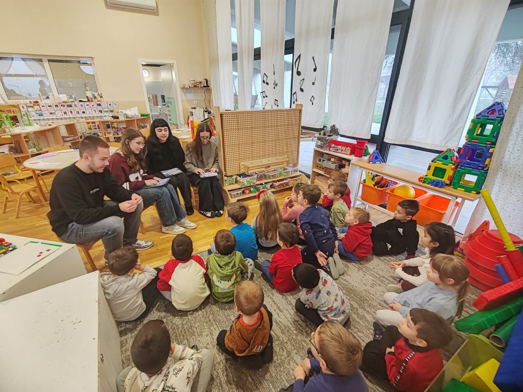 U ponedjeljak 1.12.2025. realizirana je suradnja STEAM skupine Dječjeg vrtića Pčelice Ivanovec i Centra izvrsnosti Međimurske županije koji djeluje unutra Gimnazije Josip Štolcer Slavenski. U vrtiću su nas posjetili učenici Franka Gerenčer, Noa Srša, Gita Podgorelec i Ela Miljan sa svojom profesoricom Andrejom Talan Gombar i predstavili područje Znameniti Međimurci u slici i priči. Na djeci primjeren način dočarana je slikovnica o Josipu Štolceru Slavenskom – između znanosti i umjetnosti, koju su proteklih godina vrijedno stvarali učenici polaznici Centra izvrsnosti, slikovnica govori o čovjeku s notama u srcu i Međimurjem u duši. Djeca su spoznala o životu i životnom putu poznatog skladatelja, upoznala su dragocjene detalje naše glazbene i kulturne baštine. Radionica je završila dodjelom priznanja djeci polaznicima radionice te zajedničkom igrom učenika Gimnazije Josip Štolcer Slavenski i djecom polaznicima STEAM skupine.Zahvaljujemo učenicima i profesorici Andreji na izdvojenom vremenu i angažmanu te se veselimo novim susretima.